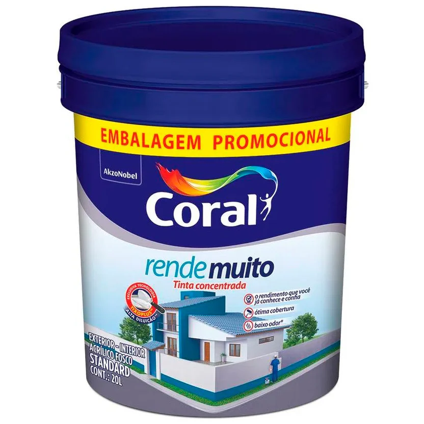 Coral Rende Muito é a tinta concentrada de alto rendimento que você já conhece e confia. Sua exclusiva tecnologia Tixoplus proporciona alta diluição, de 50% até 80% de água, para uma pintura com ótima cobertura e baixo odor.